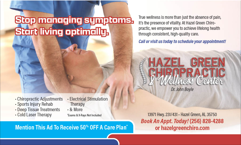 Contact Hazel Green Chiropractic: (256) 828-4288 / www.hazelgreenchiro.com