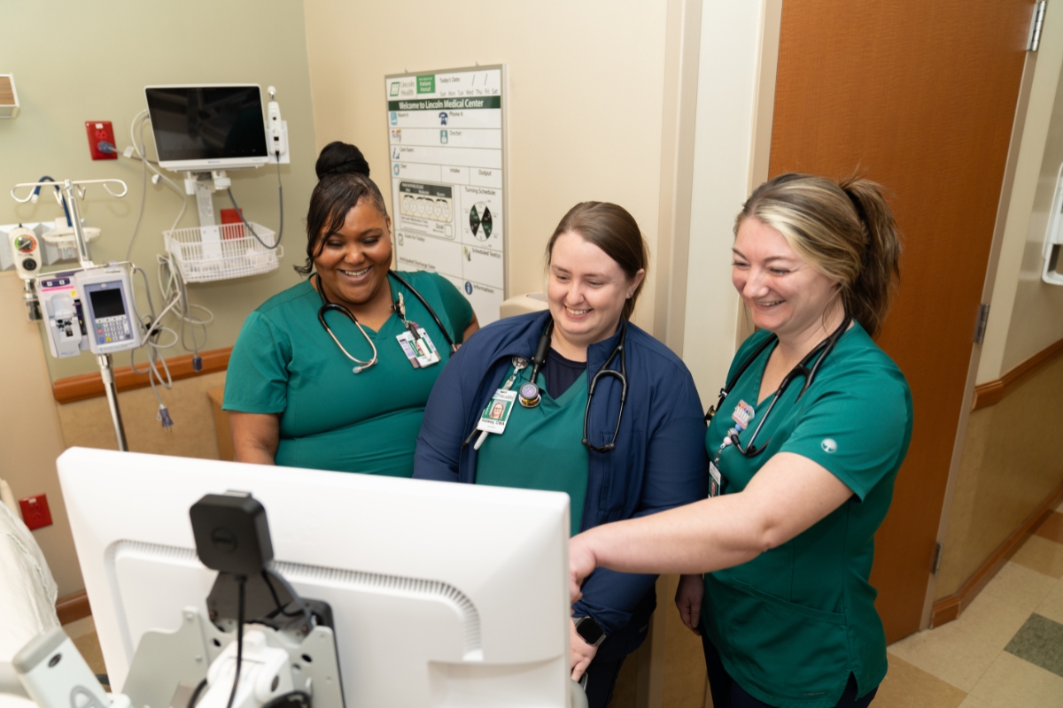 A TENNESSEE COLLEGE of Applied Technology (TCAT) nursing student shadows a Lincoln Medical Center nurse, staying full shifts to assist where needed and observe every aspect of the job. One Lincoln Health employee, already on the job, works hand in hand with a medical billing and coding specialist, learning those skills through direct experience. These are just a few examples of how Lincoln Health’s apprenticeship program is investing in future generations of health care providers.