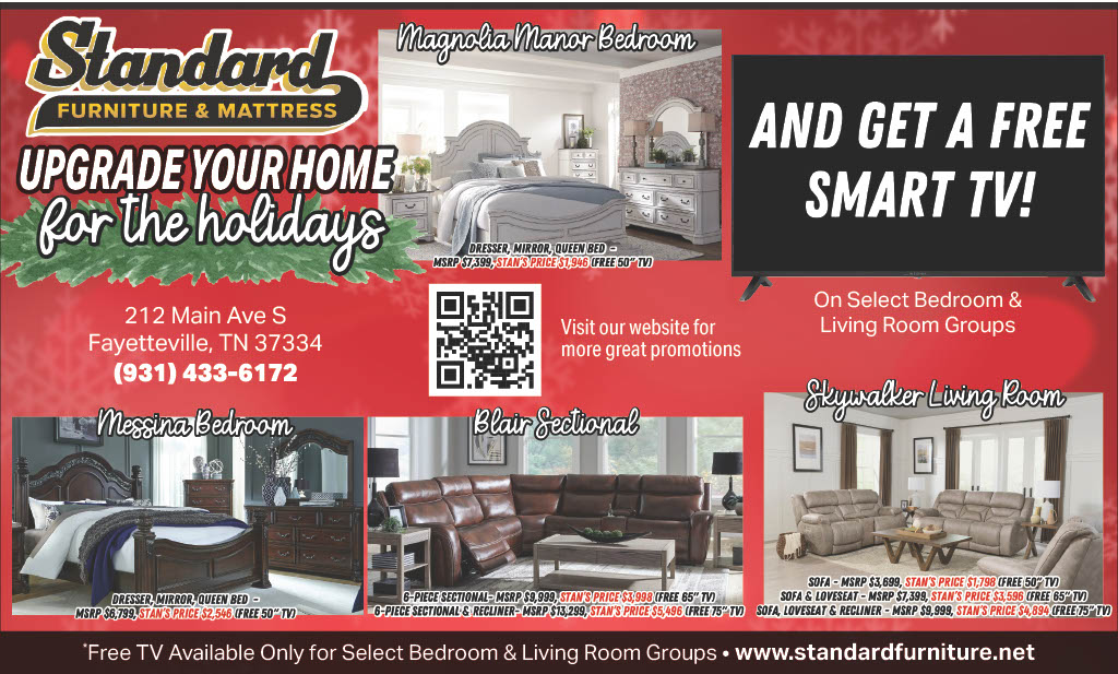 Call (931) 433-6172 or visit www.standardfurniture.net.