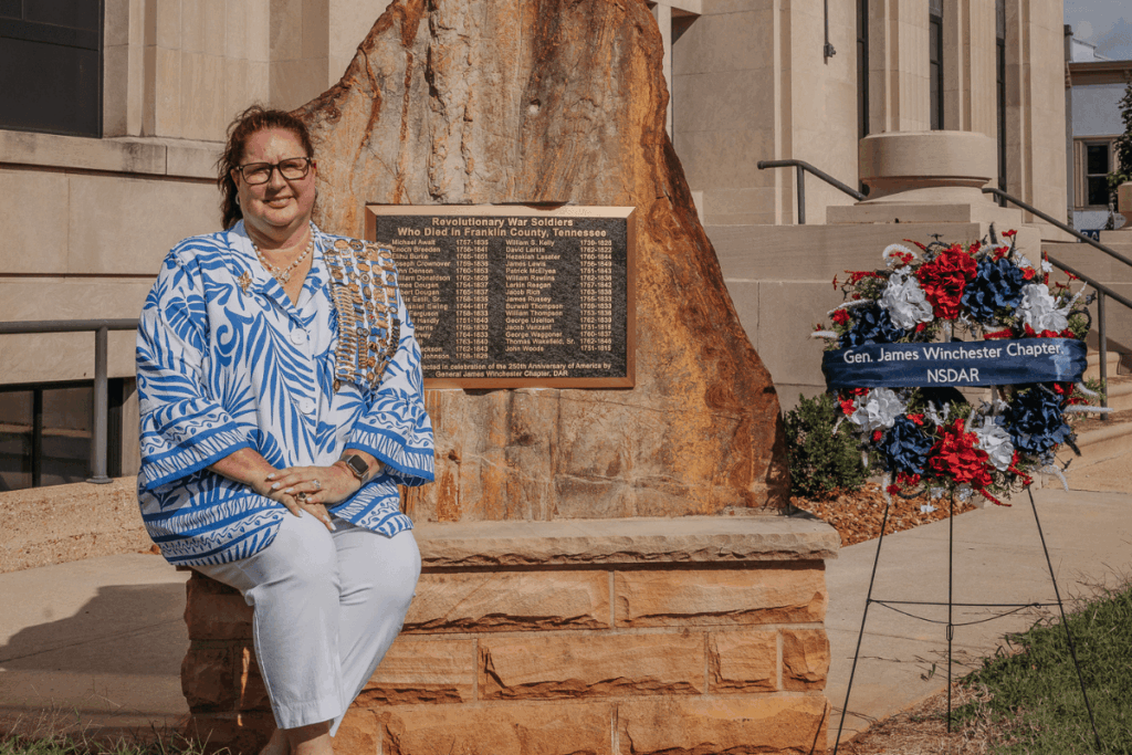 In preparation for the monument’s dedication, the chapter has successfully traced numerous descendants of the honored soldiers. These individuals are being personally invited to attend the upcoming ceremony — a central event in Franklin County’s celebration of America’s 250th anniversary. To date, the DAR has 24 chapter members who descend from one or more of the 33 identified soldiers. Neese and Moore note that Franklin County’s Revolutionary heritage distinguishes it from other regions in Tennessee. Its unique history as one of the state’s earliest established counties, founded in 1807, just 11 years after Tennessee achieved statehood, quickly became a beacon for Revolutionary War veterans seeking opportunity in a new land.