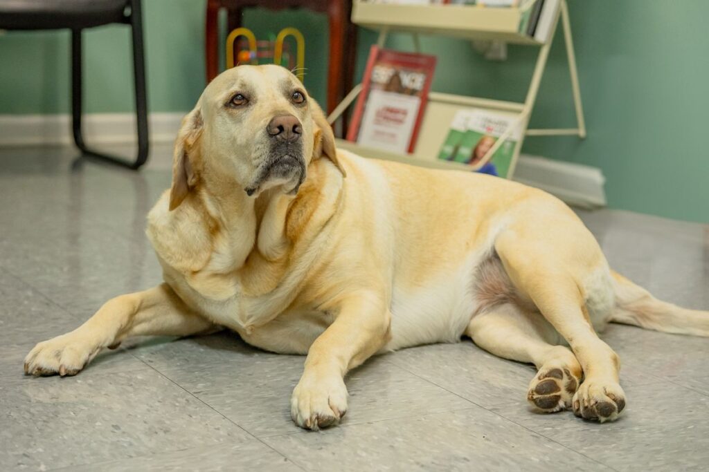 Chiu said Peaches is registered as a companion animal. This allows her to roam the office and exam rooms freely, but she can be put away if a patient is scared of dogs or has an allergy. Chiu says those are very rare occurrences. Most patients are thrilled to come back each time to see the friendly Lab, whose signature move is to flop down in front of patients and roll over for belly rubs. She can also tell which patients have brought food for her, and she visits them first. The 7-year-old dog has a very calm demeanor, and Chiu said yellow Labs are the calmest breeds of Labradors, and work well for patient interactions.