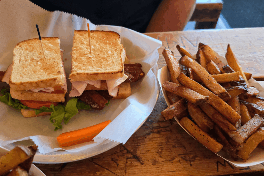 We went for lunch and ordered a spread big enough to feed a dorm: the Reuben, the Club, fried mushrooms, fried zucchini, and their real-cut French fries. The Reuben was everything you want it to be — gooey, tangy, and toasted on a marble rye bread. The Club came out nice and hearty, toasted on sourdough with fresh layers of classic goodness in every bite. That golden crunch from the bread made it stand out from your typical diner sandwich.