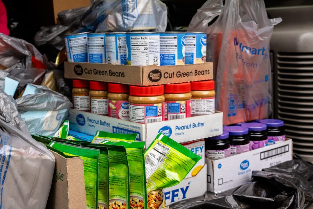 The parish still has a small pantry of nonperishables located outside the church for off-hour guests. This is stocked with beanie weenies, Vienna sausages, premade peanut butter and jelly sandwiches, shelf-stable milk, fruit cups, and drinks.