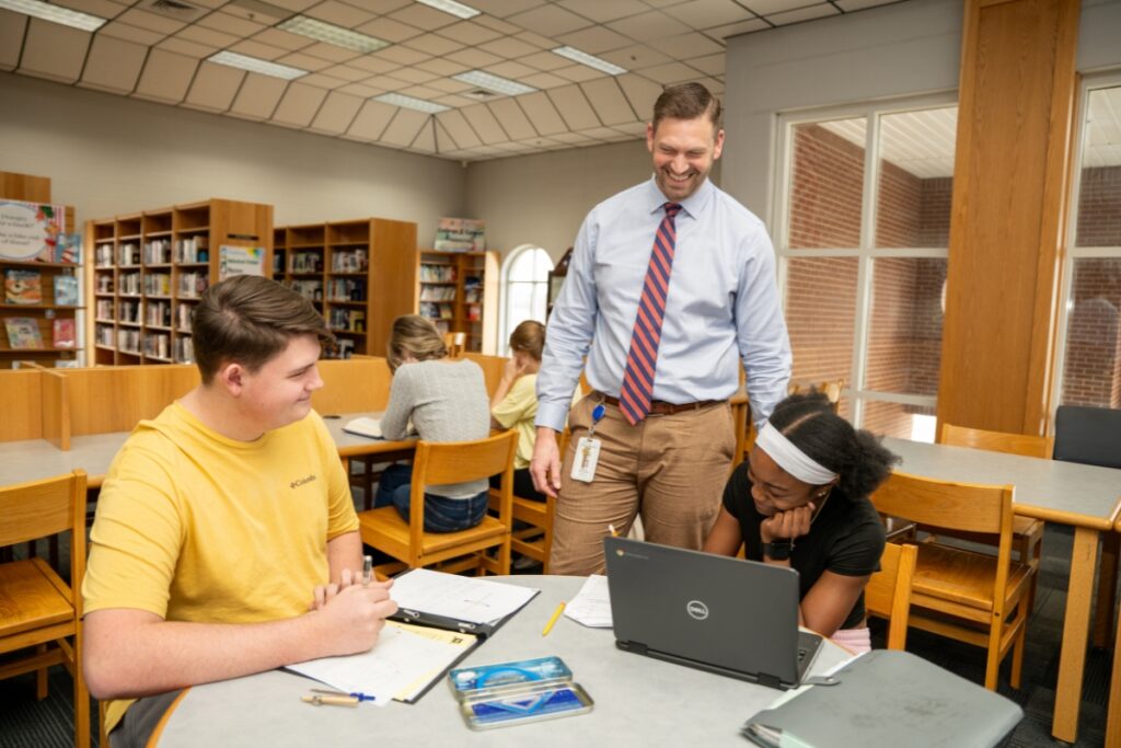 Scott said his four assistant principals, athletic director, and school counseling team help manage the daily decisions and problem-solving. Because it is a large faculty, the administrators divide teachers into smaller groups, each with a designated point person.