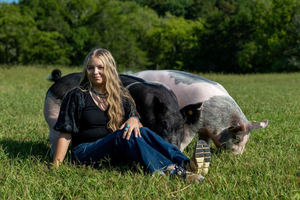Showing swine was supposed to be Abbygail’s stepping stone to steers. “Once I got invested in the feed science and how pigs are shaped so fast, I was really drawn in. The nutrition science behind shaping certain aspects of their muscular structure has kept me drawn to the species,” Abbygail said.