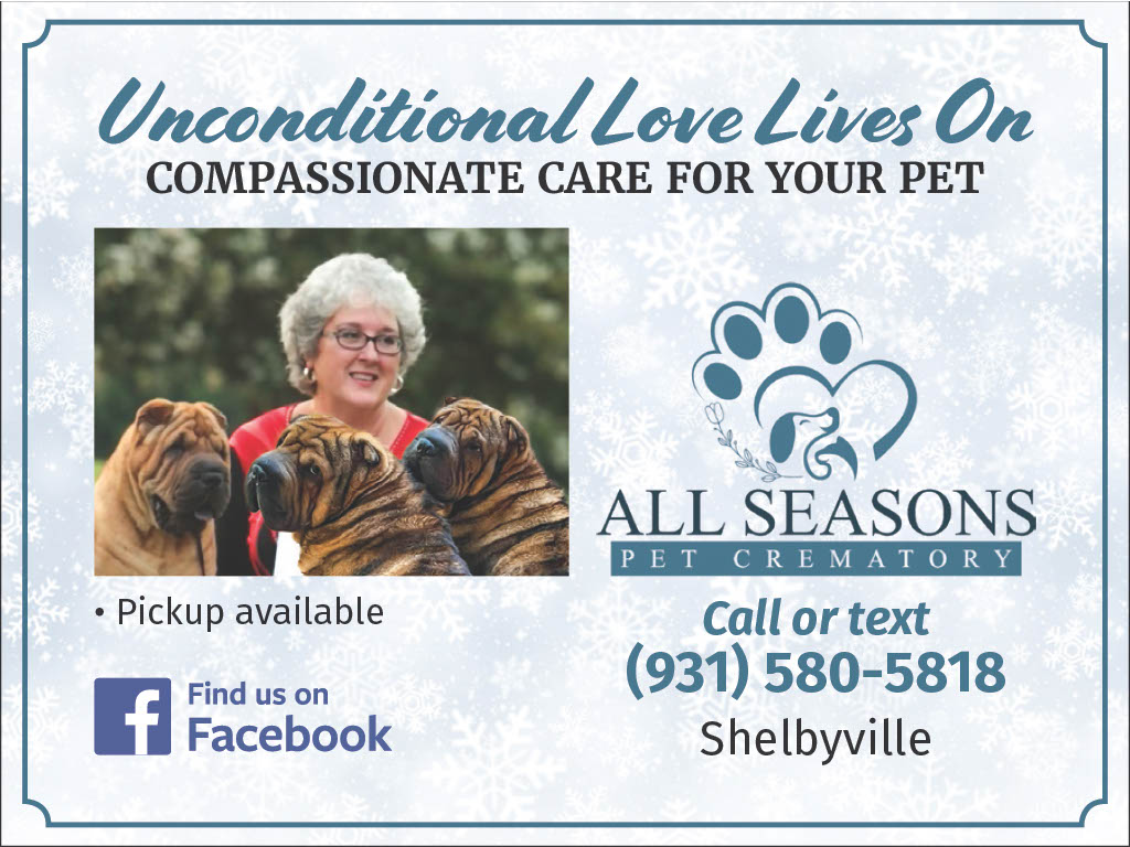 Contact All Seasons Pet Crematory: (931) 580-5818 /www.allseasonspetcrematory.com