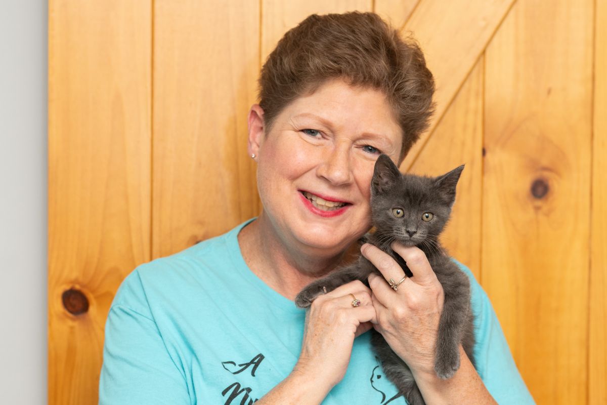Her love of cats began as a child. “My first cat was a fluffy orange cat named Ginger. I didn’t realize until recently that female orange cats are pretty rare. But the pet who had the greatest impact on me was a beautiful long-haired Siamese named Simone. She adored me and followed me everywhere. She would paw at me to pick her up and laid across my shoulders. I still miss her.”