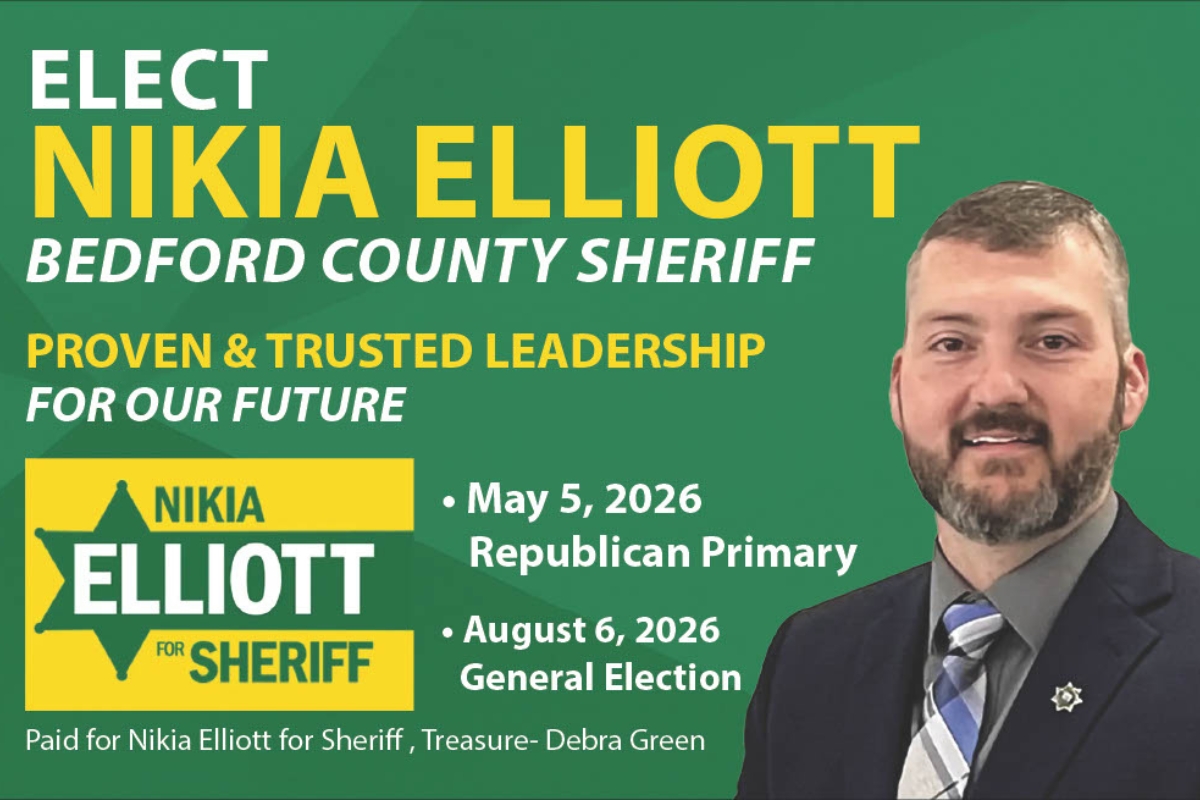 Sponsored content paid for by Nikia Elliot for Bedford County Sheriff – www.electelliott4sheriff.com