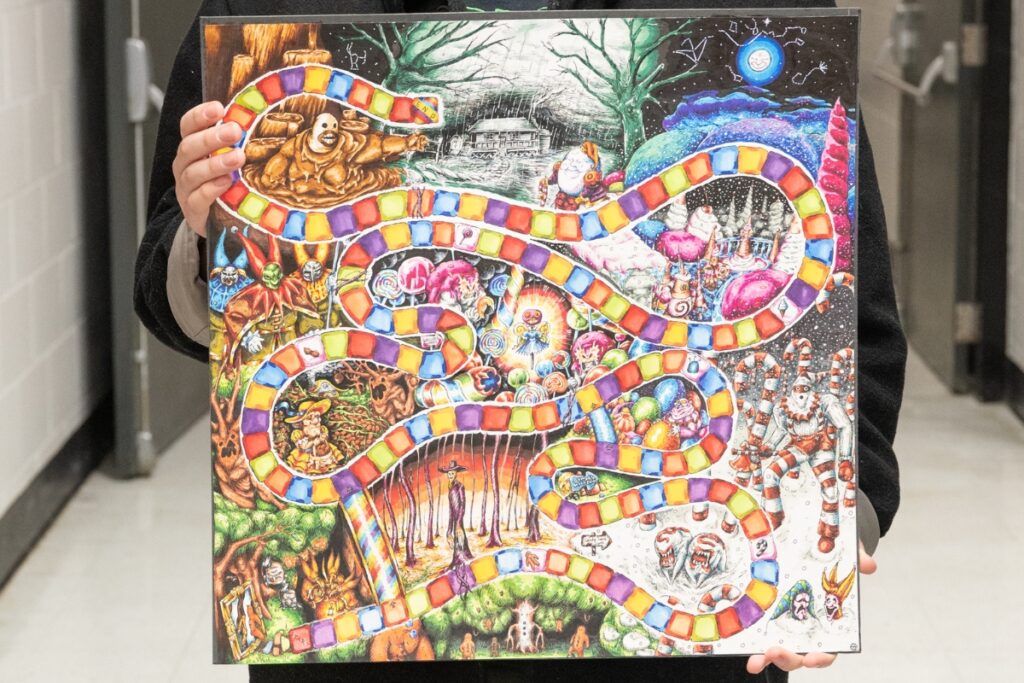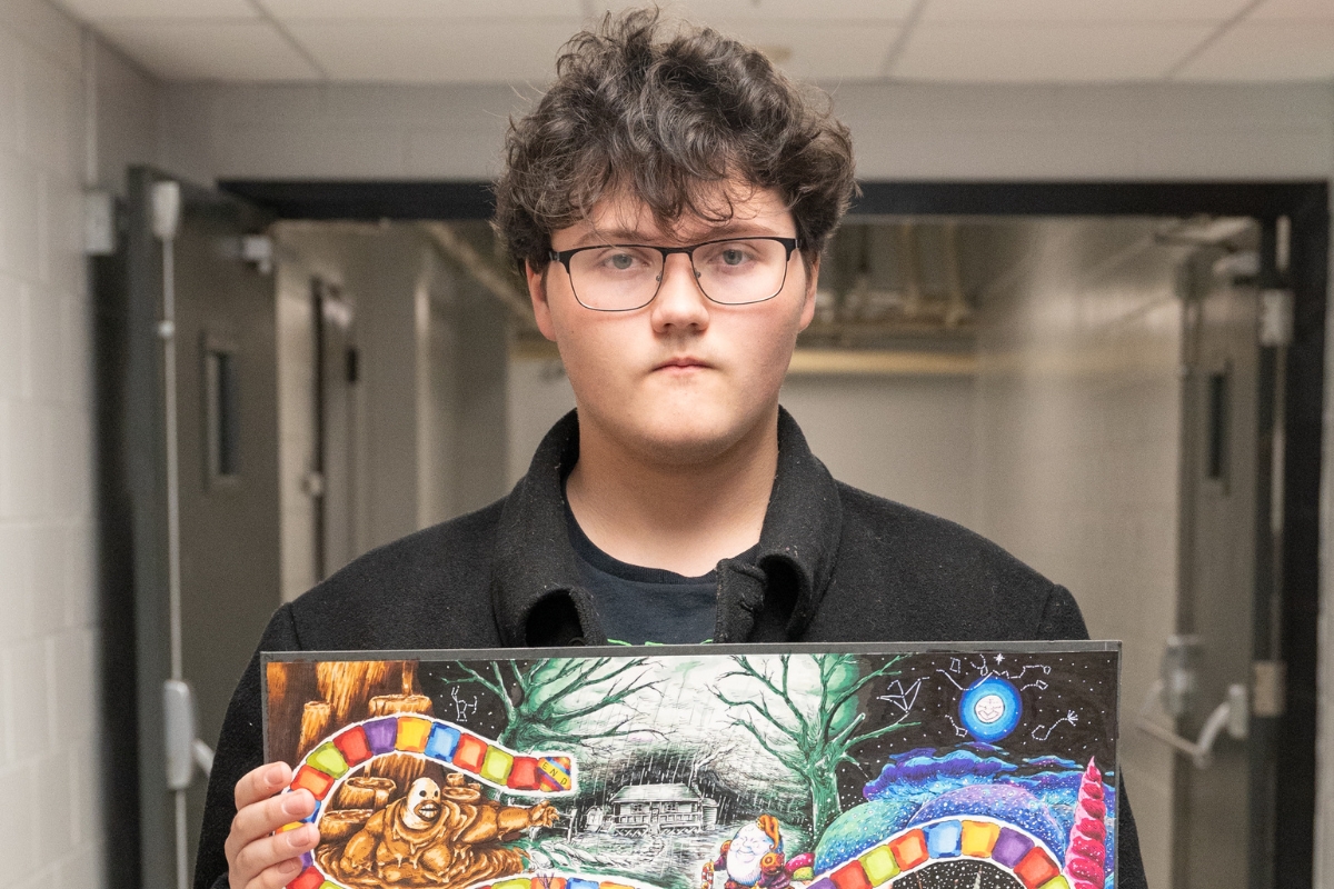 Tipps received the Silver Key Award for his drawing titled “Pantagruel’s Drolatic Dream of Candy.” According to Tipps, his artwork is based on the original idea behind the Candy Land game. He expanded on that narrative and added his own twist, including a touch of the eerie with a bit of whimsy.