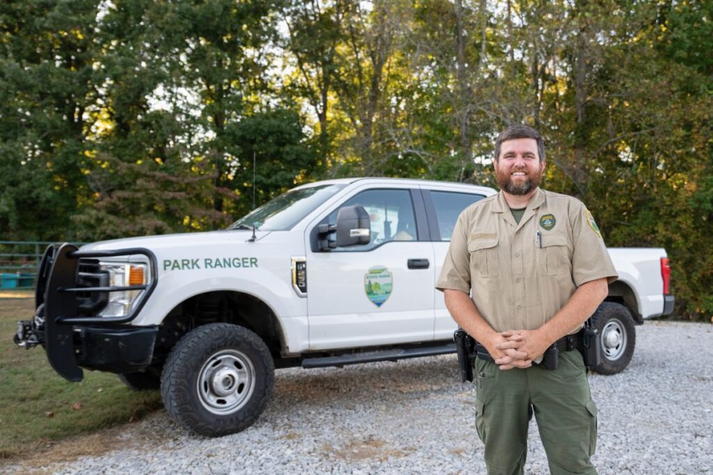 “I started my career in the chief ranger’s office for the state,” he said. “I was asked by the chief ranger to come in train some of the mounted patrol horses. He knew my history of rodeoing and training horses, so he asked me to come in and help do that on a part-time basis. From there, I just kind of grew into doing a lot of different jobs within the chief ranger’s office. I also helped at Henry Horton, where I worked for a little while and then transferred to Tims Ford [State Park], where I have been since 2019.”