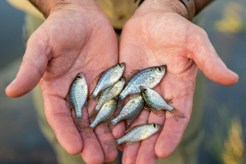 “We’re the most productive warm-water hatchery in Tennessee, thanks to a high-quality water supply via two deep penetrations — 20 and 60 feet below summer pool,” Singer explained. “By drawing warm water from upper levels and cold water from lower levels, we can control pond temperatures to optimize spawning and growth. Unlike spring-fed hatcheries that need organic fertilizers to kickstart plankton blooms, we get ready-made zooplankton pumped straight from the lake. This boosts our fry’s growth so quickly that we can double-crop our grow-out ponds: raise one batch of fish in spring, harvest, then seed a second crop in the same space before fall. We concentrate on five sportfish species. We raise around 2.3 million fish a year on average, all species combined.”