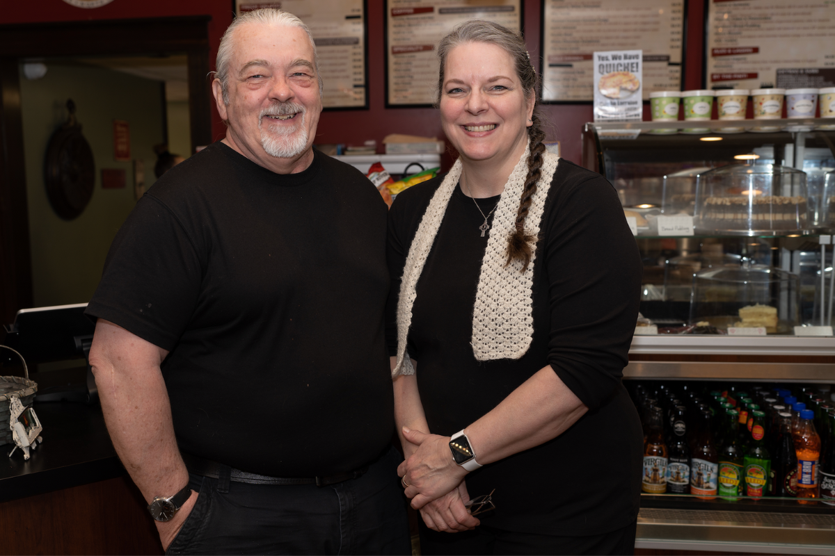For the first 13 years, Denise ran the day-to-day operations while Chris worked two jobs: his day job and then at the coffee house every morning, night, and weekend. Now that Chris has retired for a second time, he works full time, baking and managing the kitchen and business affairs, while Denise does specialty baking and manages the staff.